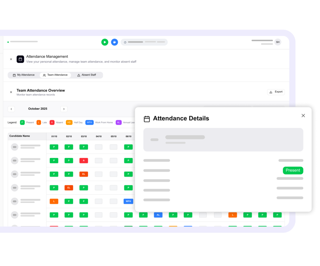 Absolutely. OXhrm is optimized for remote and hybrid workforces. Employees can clock in from approved IPs or geo-locations, and you can track their activity levels, app usage, and idle time — all while respecting privacy and compliance. The dashboard offers real-time visibility into who’s working, when, and how productively, no matter where your team is located.