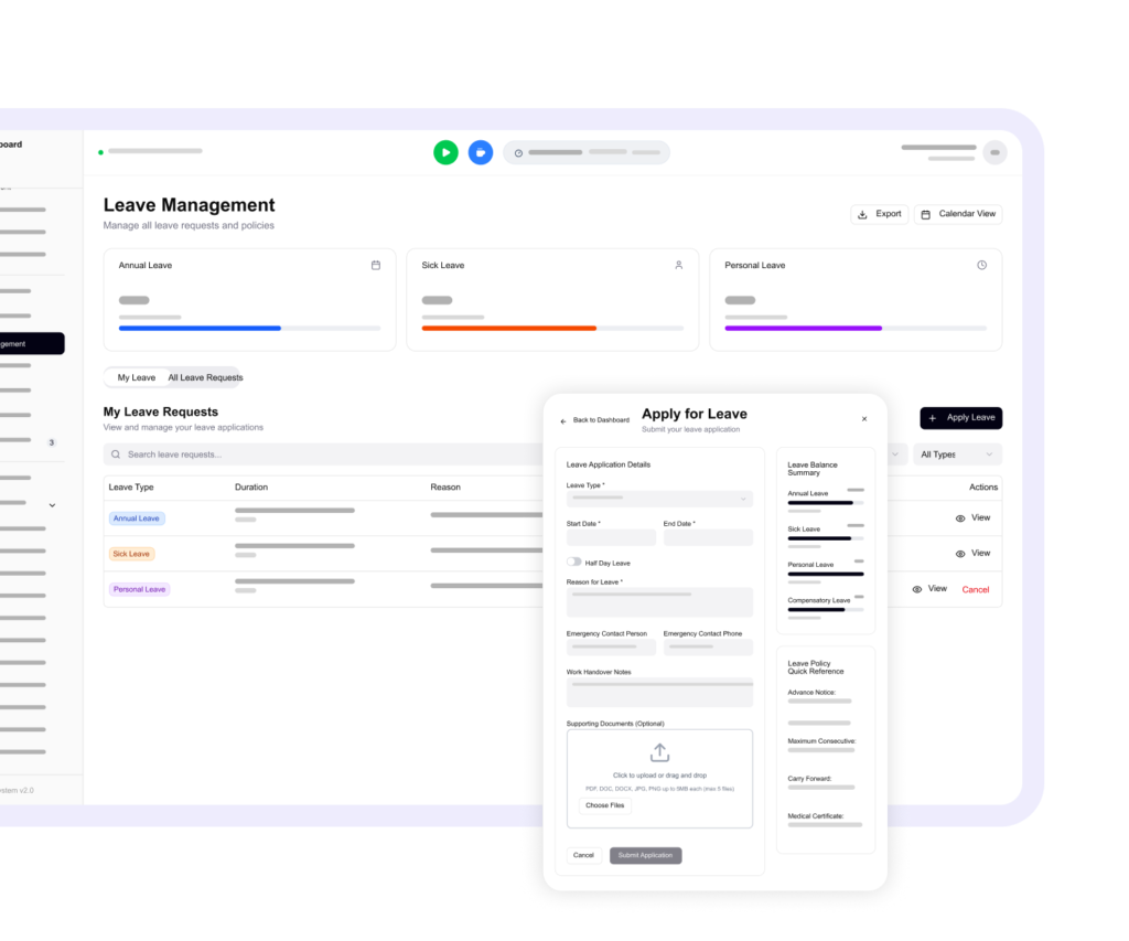 - Custom leave types and policies
